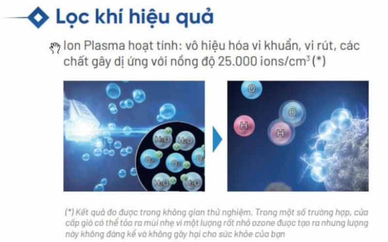 Công nghệ ion Plasma vô hiệu hóa các chất gây hại lơ lửng trong không khí.
