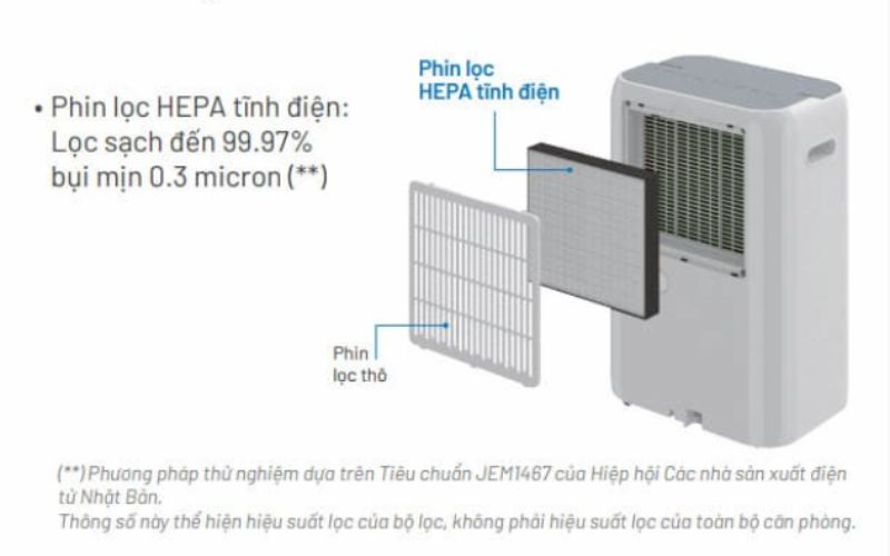 Phin lọc HEPA tĩnh điện loại bỏ bụi mịn PM2.5, các hạt siêu nhỏ, duy trì tuổi thọ thiết bị.