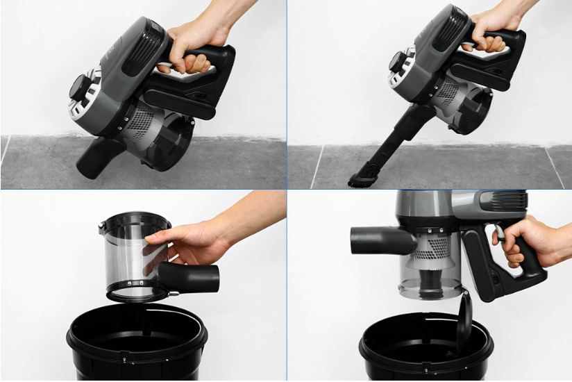 Sản phẩm thuộc dòng máy hút bụi 2 trong 1, cho phép người dùng tháo rời phần thân máy và sử dụng nó như một máy hút bụi cầm tay khi cần làm sạch các vị trí cao hoặc trên ghế sofa, giường nệm, các khu vực khó tiếp cận.