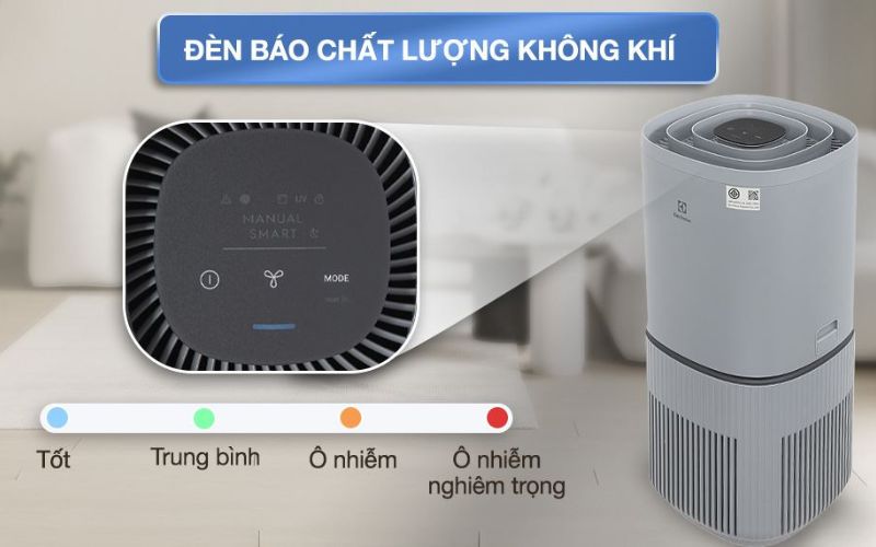 Trên sản phẩm còn ở sở hữu đèn báo chất lượng không khí, tùy vào tình trạng chất lượng không khí trong phòng, thể hiện thông qua 4 màu sắc: Màu xanh dương - chất lượng không khí tốt, Màu xanh lá - ở mức độ trung bình, Màu cam - không khí đang ở mức ô nhiễm, Màu đỏ - ô nhiễm không khí nghiêm trọng, rồi điều chỉnh chế độ lọc phù hợp, để có kết quả lọc tốt nhất.