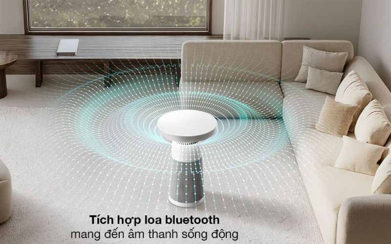 Bên cạnh khả năng thanh lọc không khí, máy còn hỗ trợ kết nối Bluetooth và kết nối với TV, mang lại trải nghiệm nghe nhạc tiện lợi trong khi vẫn đảm bảo không gian luôn trong lành. Việc tích hợp nhiều tính năng trong cùng một thiết bị cũng giúp giảm bớt số lượng máy móc trong phòng, giữ cho không gian gọn gàng hơn.