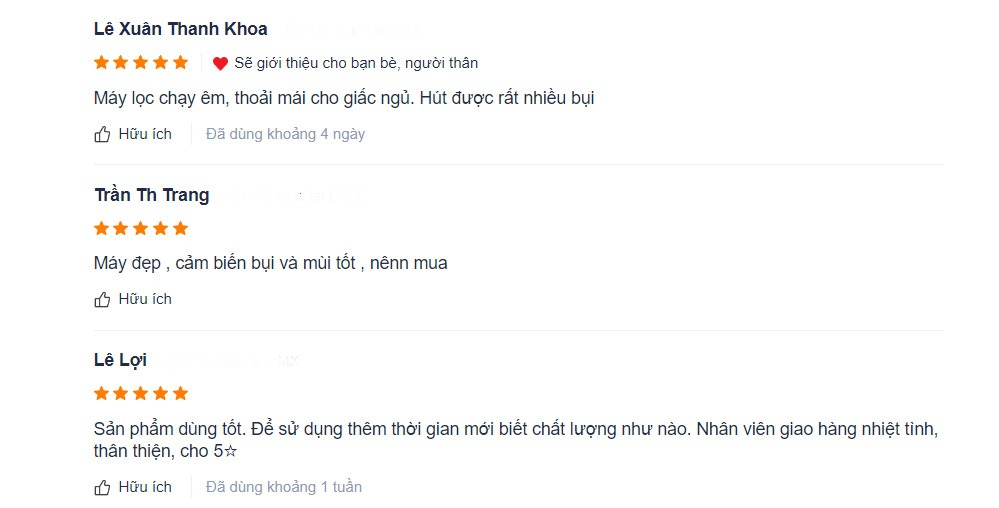 - Bộ lọc ba lớp loại bỏ các chất có hại như hạt lớn, bụi mịn, virus và cả vi khuẩn.