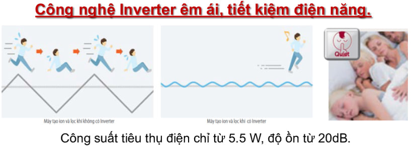 Công nghệ J-Tech Inverter có khả năng tiết kiệm đến 60% điện năng tiêu thụ. Vì vậy, sản phẩm có thể hoạt động cả ngày, đem đến bầu không khí trong lành nhưng vẫn tiết kiệm chi phí tiền điện hàng tháng.