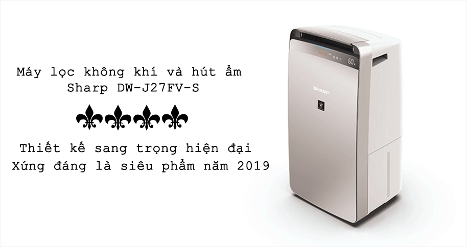 Máy lọc không khí và hút ẩm Sharp DW-J27FV-S có thể sử dụng cho phòng lên tới 67m2, công suất hút ẩm 27 L/ngày