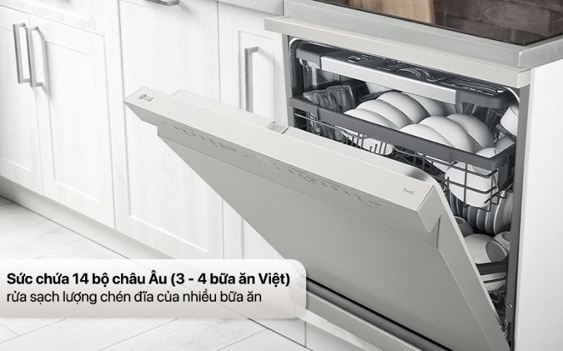 Khoang máy thiết kế rộng rãi, có khả năng chứa lên đến 14 bộ bát đĩa Châu Âu tương đương 3 - 4 bữa ăn trong các gia đình Việt. Đây là lựa chọn lý tưởng cho gia đình đông người 3 - 5 thành viên, hoặc người dùng có nhu cầu lớn, thường xuyên nấu nhiều món ăn, gom nhiều bát bát rửa một lần, tiết kiệm thời gian, công sức, tối ưu hóa điện nước.