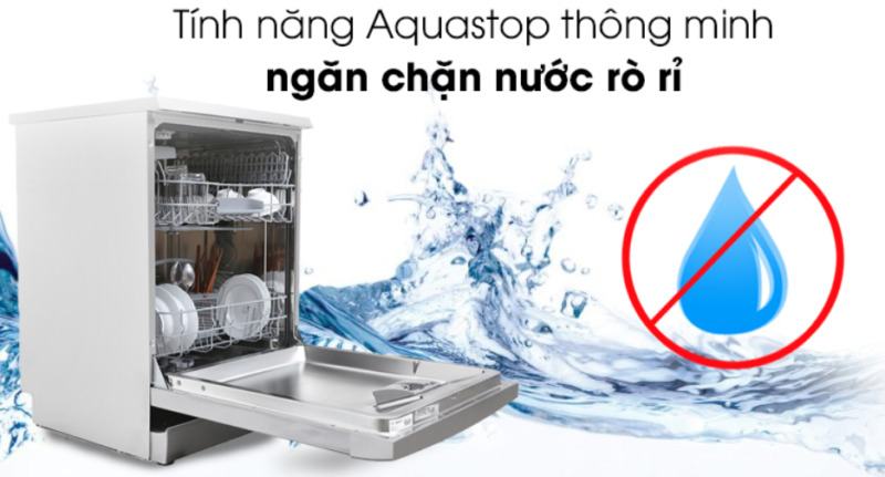 Nhờ sử dụng công nghệ AquaStop, khi phát hiện tình trạng rò rỉ, máy sẽ tự ngắt nguồn nước kể cả khi máy đã ngắt điện. Nhờ đó, việc sử dụng máy rửa bát an toàn hơn, tiết kiệm nước và đảm bảo vệ sinh cho máy.
