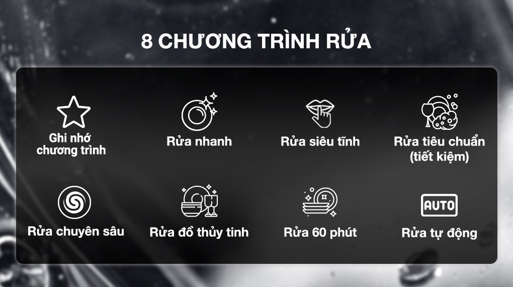 4. Đáp ứng m��i nhu cầu rửa sạch chén đĩa nhờ 8 chương trình tiện lợi