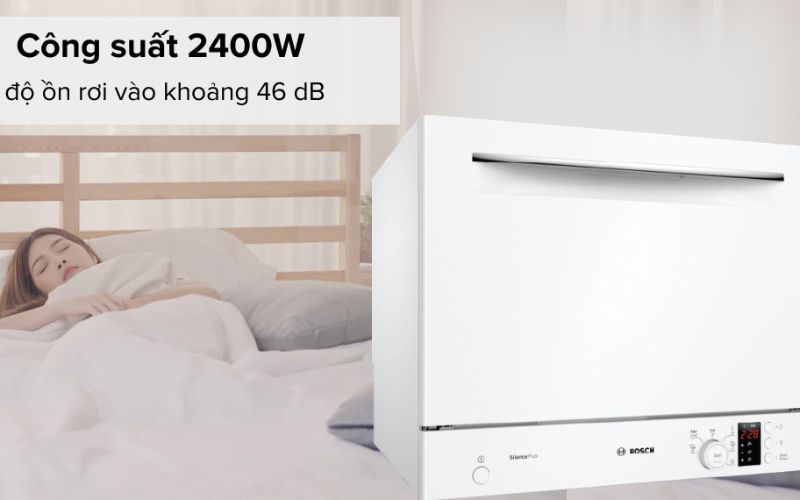 Máy rửa chén Mini Bosch hiện đại, công suất rửa 6 bộ đồ, 6 chương trình rửa.