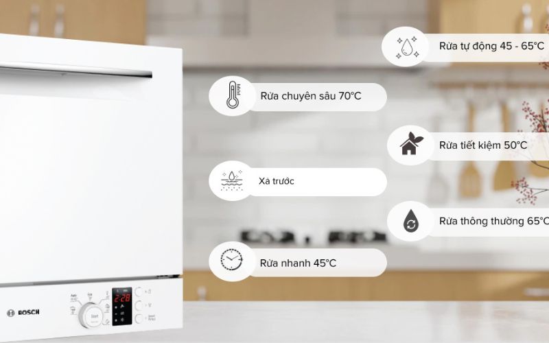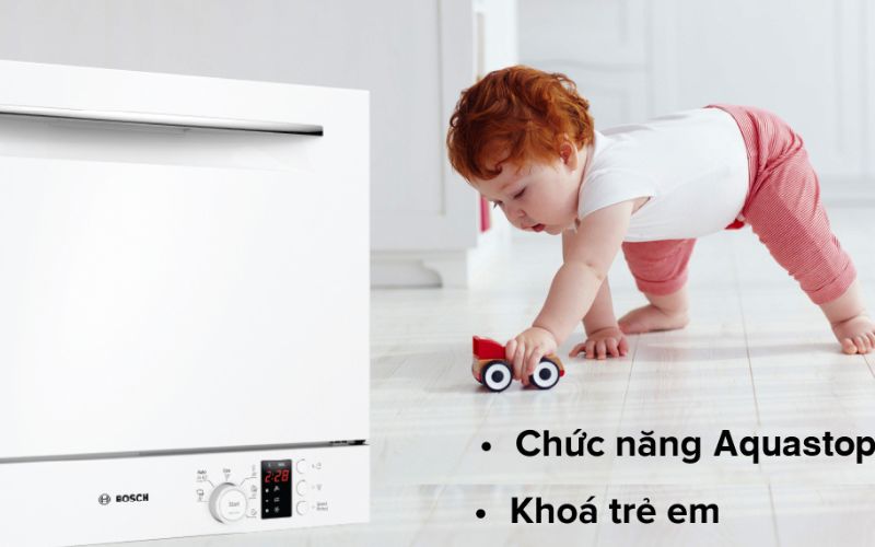 Các tiện ích cho người dùng sử dụng máy rửa chén Mini Bosch hiệu quả, an toàn
