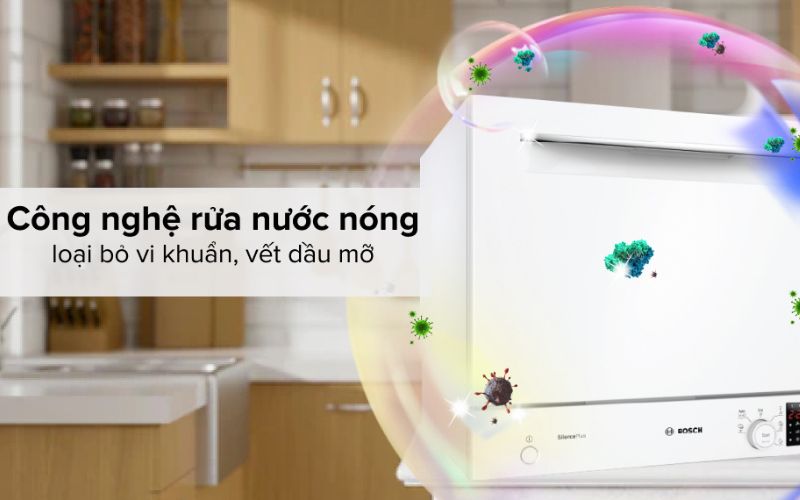 Công nghệ rửa nước nóng ở nhiệt độ cao nhẹ nhàng loại bỏ các vết bẩn dầu mỡ và còn có thể diệt khuẩn hiệu quả nên sau khi rửa, chén đĩa sạch bóng, an toàn hơn cho sức khỏe người dùng.