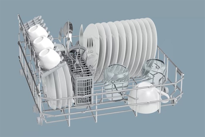 Bên trong khoang máy trang bị 1 khay rửa cùng giỏ đựng dao muỗng đũa, thêm giá bên trái để đặt các vật dụng nhỏ như dao, kéo, ly tách nhỏ,... cho bạn sắp xếp, lấy vật dụng nhanh gọn.