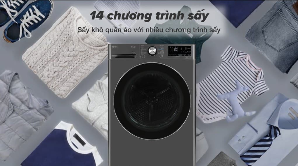 Chiếc máy sấy tích hợp đến 14 chương trình sấy khác nhau tùy vào nhu cầu, chất liệu vải, số lượng quần áo… để người dùng tha hồ lựa chọn chương trình sấy phù hợp nhất giúp cho quần áo luôn khô ráo thơm tho, bền màu như mới.