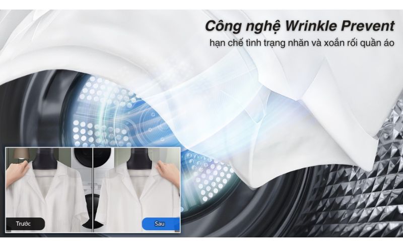 Công nghệ Wrinkle Prevent giữ quần áo không bị nhàu, hạn chế thời gian ủi.