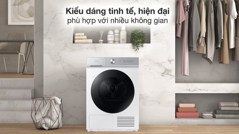 Máy sấy bơm nhiệt Samsung DV90BB9440GH/SV 9 kg thuộc dòng máy lồng ngang cửa ngang với thiết kế tinh tế, hiện đại đến từng đường nét, kiểu dáng nhỏ gọn có thể đặt chồng, bên cạnh máy giặt để tối ưu không gian sống. Sản phẩm còn sử dụng mặt kính cường lực siêu sang trọng, có tính thẩm mỹ cao, chống trầy xước, đổ vỡ.