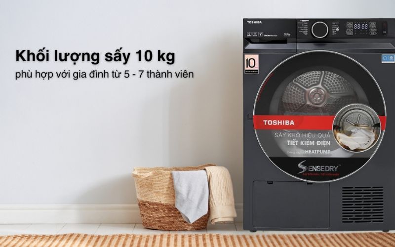 Máy sấy Toshiba bền đẹp 10kg, 12 chương trình sấy sử dụng tốt cho gia đình 5 - 7 người.
