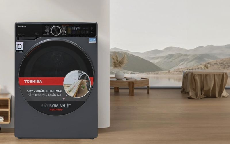 Chiếc máy sấy Toshiba hiện đại điểm tô thêm cho không gian giặt sấy