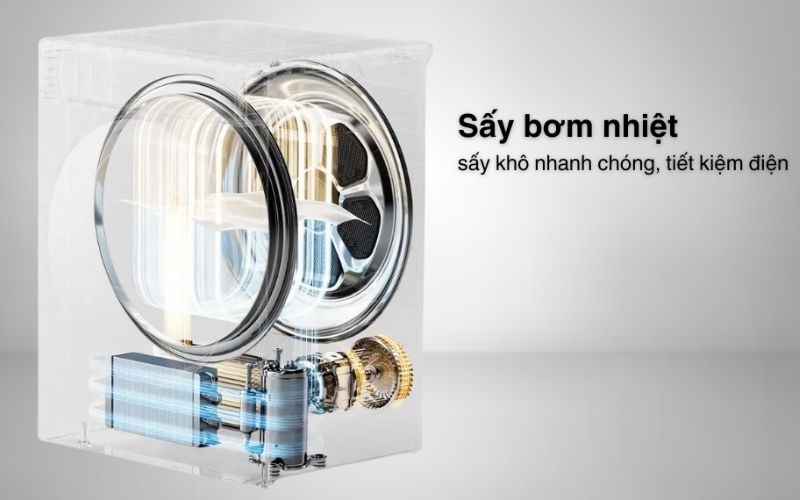 3. Sấy khô nhẹ nhàng, tiết kiệm điện năng nhờ cơ chế sấy bơm nhiệt Heat Pump