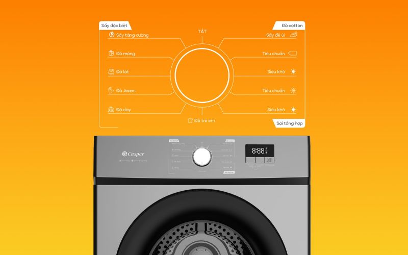 Đặc biệt, máy sấy Casper thiết kế với hơn 11 chương trình sấy thông minh, sấy được đa dạng chất liệu quần áo hiệu quả, sấy nhanh, bảo vệ sợi vải, đáp ứng tốt mọi nhu cầu sử dụng của người dùng.