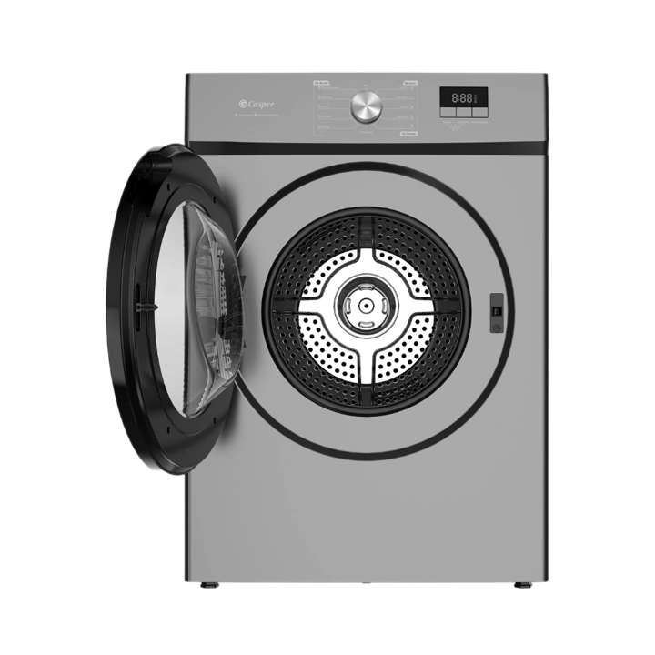 Máy sấy thông hơi Casper 9kg TD-E9VG sở hữu thiết kế lồng ngang cửa trước tiện lợi, gam màu ghi xám sang trọng, hiện đại, mang tính thẩm mỹ cao và tạo điểm nhấn tinh tế cho mọi không gian sử dụng.