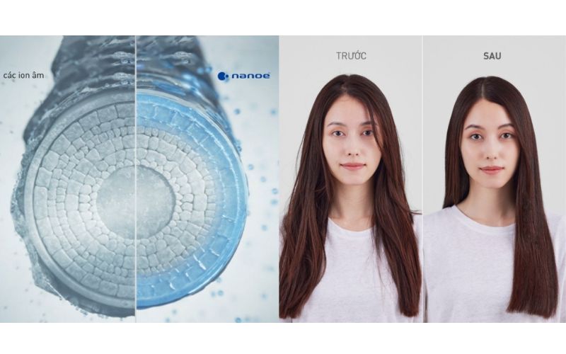 Các hạt Nanoe™ cấp ẩm sâu, mái tóc óng ả, mượt mà hơn