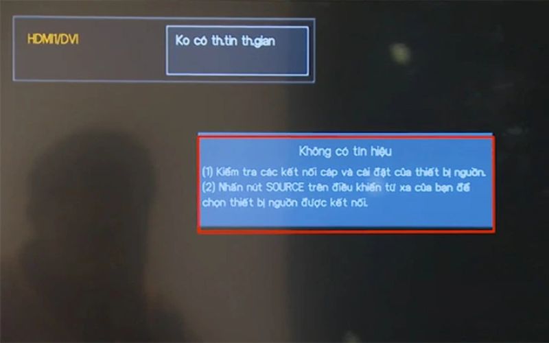 Chọn sai nguồn đầu vào Input, tivi đang để ở HDMI 1 nhưng dây cáp đang cắm ở cổng HDMI 2 hoặc cổng AV, nên tivi không nhận được tín hiệu.