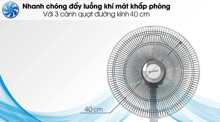 Chiếc quạt lửng Sharp vận hành với tổng công suất 50W kết hợp 3 cánh quạt có đường kính lớn 40cm tạo ra lưu lượng gió cực mạnh làm mát lạnh cả căn phòng, cho người dùng cảm thấy dễ chịu thoải mái.