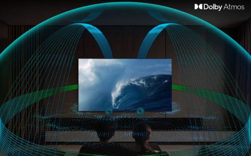 Công nghệ Dolby Atmos kết hợp cùng hệ thống loa đánh trần vật lý trên Tivi mang đến hiệu ứng âm thanh vòm đa chiều, lan tỏa từ mọi hướng. Âm thanh như bao trùm lấy bạn, khiến mỗi khoảnh khắc trở nên sống động, tựa như đang tận hưởng trọn vẹn bộ phim tại rạp chiếu chuyên nghiệp.