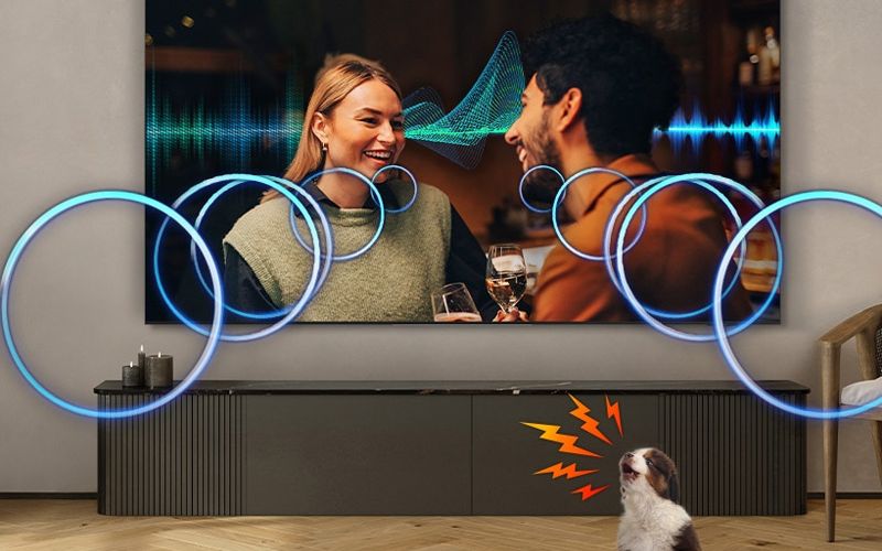 Hơn nữa, tivi có cung cấp thêm công nghệ Q-Symphony đồng bộ liền mạch giữa tivi cùng loa thanh, cho âm thanh phát ra cùng một lúc, sống động, bùng nổ, khuấy động mọi giác quan, xem các chương trình giải trí chân thực hơn.
