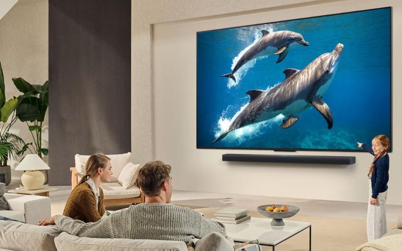 Chất âm cũng được nâng cấp, sống động, mạnh mẽ hơn. Công nghệ AI Sound Pro cung cấp khả năng phân tích từng thể loại, nội dung rồi tối ưu âm thanh đầu ra phù hợp, cùng với đó tái tạo hệ thống âm thanh 9.1.2 kênh ảo mạnh mẽ, sống động như trong rạp chiếu.