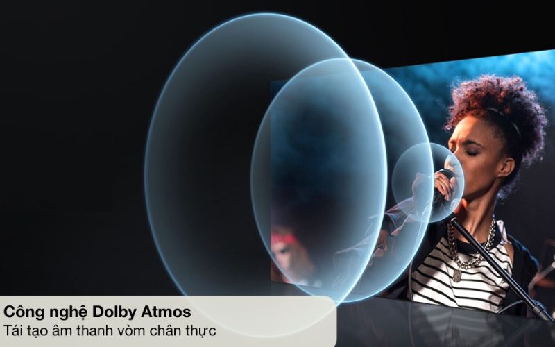 Bên cạnh đó, tivi có tích hợp đồng thời công nghệ Dolby Atmos, DTS:X mô phỏng âm thanh vòm ba chiều, âm thanh di chuyển linh hoạt, trùng khớp với từng chuyển động của vật thể trong khung hình, trải nghiệm chân thực, cuốn hút như tại rạp chiếu phim.