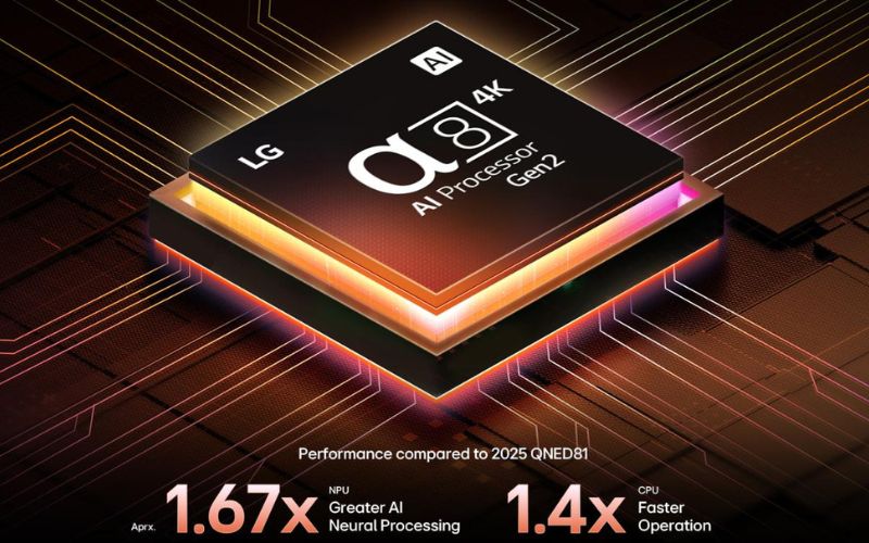 Tivi LG còn mang đến bộ xử lý thông minh a8 AI Processor 4K Gen 2 tăng cường hiệu suất xử lý, tối ưu độ tương phản màu, màu sắc, chi tiết và nâng cấp cả âm thanh. Nhờ đó, nội dung truyền tải trông thật sống động, chân thực, vô cùng mãn nhãn, cuốn hút mọi ánh nhìn.
