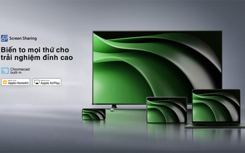 Screen Share – Apple Feature: Cho phép kết nối nhanh với thiết bị di động, hỗ trợ bạn dễ dàng chia sẻ hình ảnh, video, tài liệu từ điện thoại lên màn hình lớn, tận hưởng trải nghiệm hiển thị sắc nét và âm thanh sống động hơn.