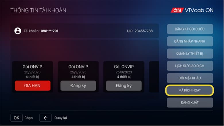3.1. Hướng dẫn kích hoạt gói VTVCab ON: