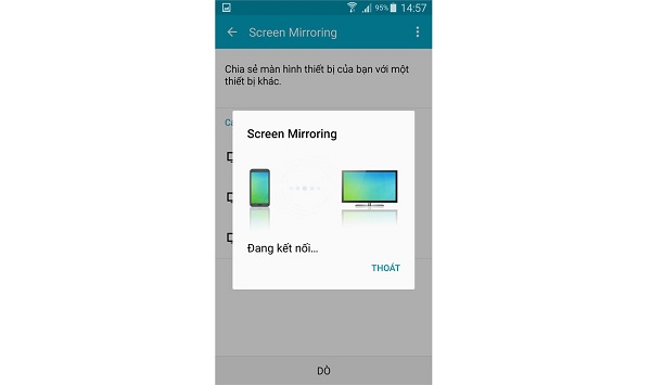 Bước 4: Sau khi chọn xong, bạn nhấn Dò để hệ thống trên điện thoại quét các thiết bị tivi khả dụng. Màn hình sẽ hiển thị danh sách thiết bị và bạn chỉ cần nhấn chọn tên thiết bị tivi mà bạn muốn phản chiếu hình ảnh.