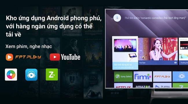 Với Tivi Sony 75X9000E bạn có thể thưởng thức những bộ phim bom tấn được cập nhật liên tục trên Youtube, FPT Play, ZingTV, Netflix... hay nghe nhạc online với hàng nghìn bài hát yêu thích trên ứng dụng Zing Mp3 hoặc trải nghiệm những trò chơi trực tuyến hot nhất.