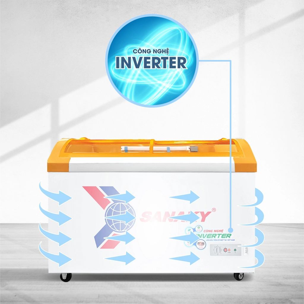 Tủ đông Sanaky VH-899K3A Inverter mặt kính cong 500L trang bị công nghệ làm lạnh ấn tượng 360 độ đem luồng khí lạnh lan tỏa hết mọi ngóc ngách trong tủ tạo môi trường bảo quản lý tưởng hơn, đảm bảo giữ thực phẩm tươi ngon trong thời gian dài ngày.