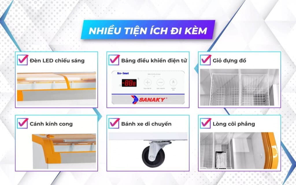 Thiết kế các tính năng đi kèm tạo thêm nhiều tiện ích khi sử dụng tủ đông Sanaky