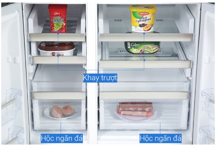 - Ngăn đá 147 lít: chia làm nhiều ngăn, hộc, giúp dễ dàng sắp xếp và phân loại các thực phẩm cần làm đông khoa học.