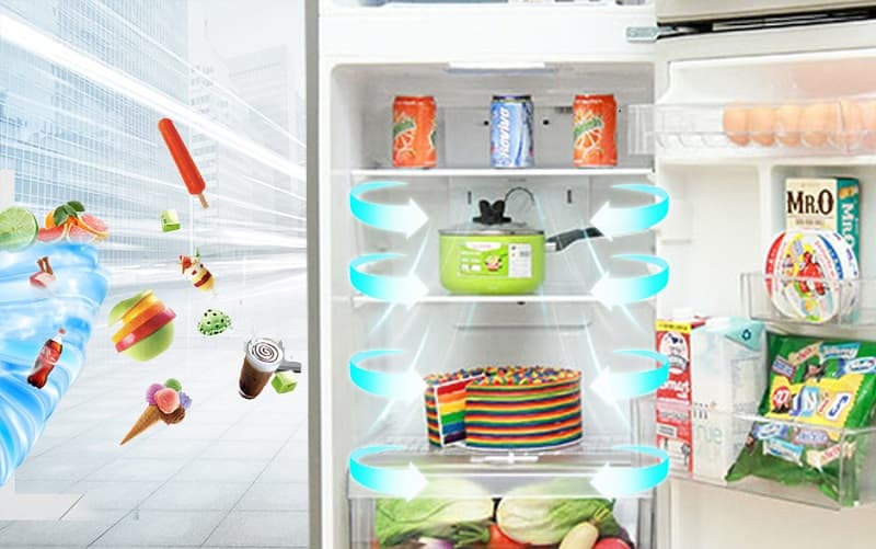 - Hệ thống khí lạnh đa chiều tới mọi ngóc ngách trong tủ giúp bảo quản thực phẩm đến mức tối ưu