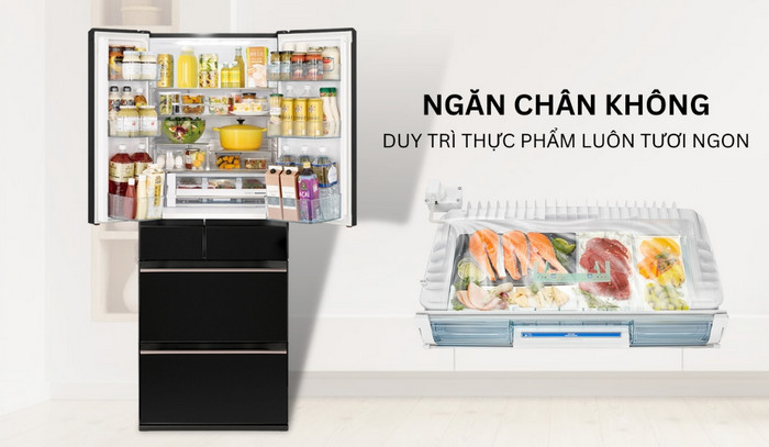 - Bảo quản thực phẩm chân không:với thiết kế cấu trúc kín, áp suất được duy trì ở ngưỡng 0.8 atm. Đảm bảo thực phẩm luôn tươi sống, hạn chế tình trạng hư hỏng, xuất hiện mùi hôi khó chịu, giảm giá trị dinh dưỡng. Tùy theo thực phẩm cần bảo quản, nhiệt độ trong ngăn chân không có thể được chuyển đổi linh hoạt từ -1 đến +1℃.