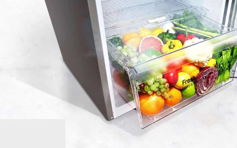 Ngăn rau củ siêu rộng, được cung cấp độ ẩm tối ưu, duy trì nguyên hàm lượng dinh dưỡng, sự tươi giòn, không bị héo úa, sử dụng dài ngày mà không cần đi chợ mỗi ngày.