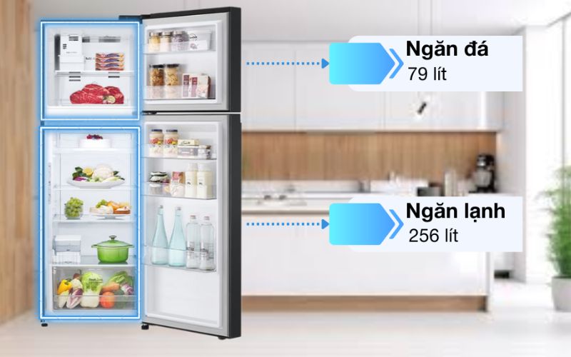 Ngăn lạnh dung tích 256 lít được thiết kế với nhiệt độ và độ ẩm tối ưu, phù hợp để lưu trữ các loại thực phẩm tươi sống, món ăn chế biến sẵn, rau củ, trái cây,… giúp thực phẩm giữ được độ tươi ngon trong thời gian dài.