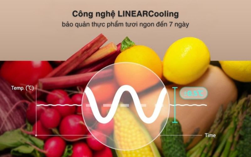 Công nghệ LINEARCooling duy trì ổn định nhiệt độ, giữ thực phẩm tươi lâu.