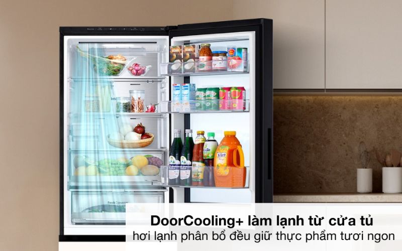 Sản phẩm sử dụng công nghệ DoorCooling+ làm lạnh từ cửa cùng luồng khí lạnh đa chiều Multi Air Flow đưa hơi lạnh lan tỏa, phân bổ đều khắp không gian tủ đến từng ngóc ngách. Cả không gian được làm lạnh toàn diện, đồng đều, lý tưởng giữ thực phẩm luôn tươi ngon, trọn hương vị, dưỡng chất.