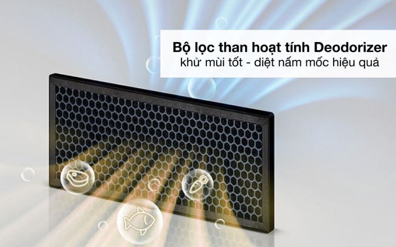 Bộ lọc Deodorizer với than hoạt tính hoạt động mạnh mẽ trong việc loại bỏ vi khuẩn, nấm mốc và khử mùi hiệu quả, ngăn chặn tình trạng lẫn lộn mùi. Nhờ khả năng làm sạch không khí bên trong tủ, không gian bảo quản luôn được duy trì trong lành, sạch sẽ, từ đó giữ cho thực phẩm tươi ngon lâu hơn, bảo toàn hương vị nguyên bản, đảm bảo chất lượng dinh dưỡng cho những bữa ăn an toàn, trọn vị của cả gia đình.