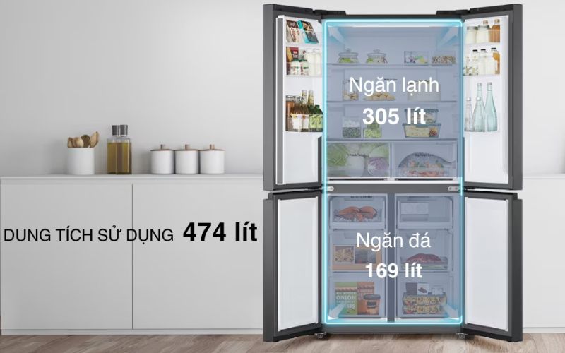 Tổng dung tích 474 lít cho gia đình 4 - 5 thành viên sử dụng thoải mái