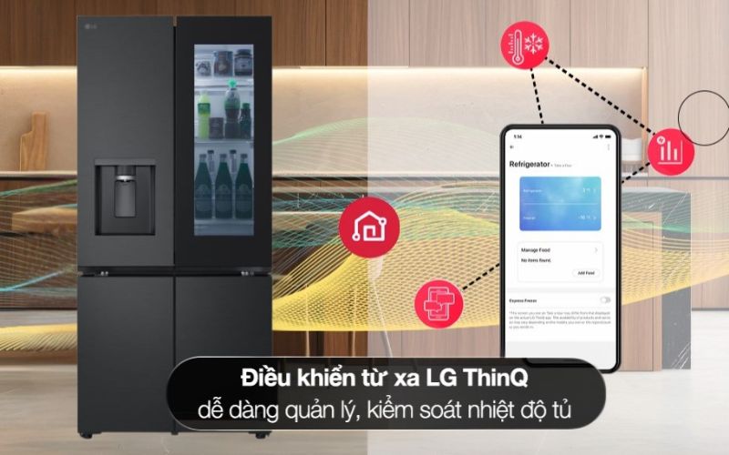 Kết nối ứng dụng LG ThinQ, cho phép người dùng dễ dàng điều khiển và theo dõi hoạt động của tủ từ xa thông qua điện thoại, tạo sự tiện lợi, linh hoạt trong quá trình sử dụng.