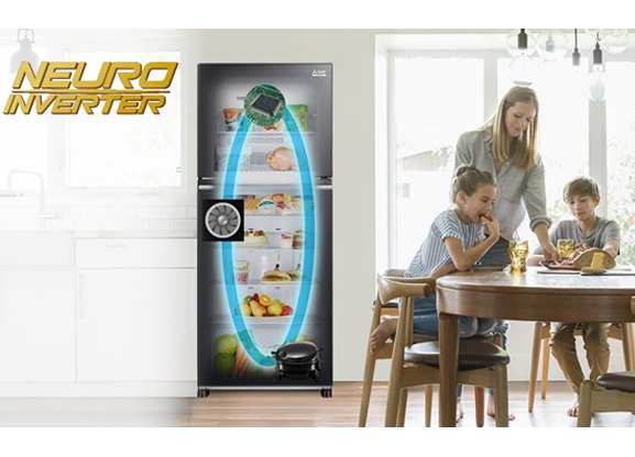 Nhờ sự ứng dụng công nghệ Neuro Inverter có khả năng trong việc ghi nhớ thói quen sử dụng của gia đình, tủ lạnh đã giúp nhiệt độ tại mỗi ngăn luôn được kiểm soát hiệu quả, thực phẩm bảo quản tốt hơn. Ngoài ra, công nghệ này còn giúp sản phẩm vận hành êm ái, ít độ ồn khó chịu, đồng thời tối ưu hóa năng lượng, tiết kiệm chi phí sử dụng điện hàng tháng.