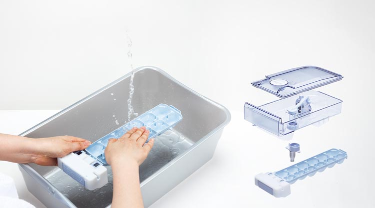 Đây lại là một tính năng hữu ích của sản phẩm, bạn chỉ việc đổ nước vào ngăn chứa, việc làm đá sẽ được tủ lạnh phục vụ từ a đến z. Đá sau khi được cấp đông, sẽ tự động rơi vào ngăn chứa đá viên để bạn thoải mái sử dụng bất cứ lúc nào. Ngoài ra, các khay và ngăn chứa đá được thiết kế để dễ dàng tháo lắp vệ sinh tránh các lớp cặn đọng lại.