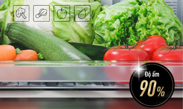 Ngăn chứa có độ ẩm lên đến 90% cung cấp môi trường lý tưởng để bảo quản rau củ quả tươi ngon
